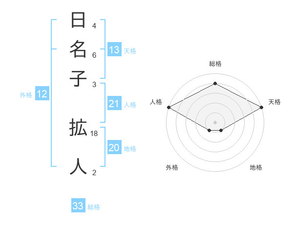 日名子 拡人さんの総格は33画の4点!