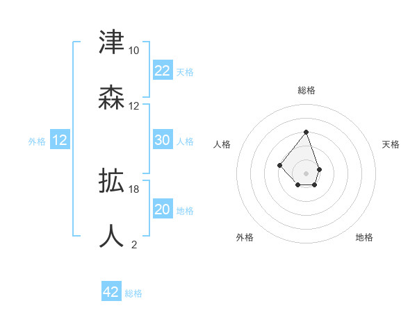 津森 拡人さんの総格は42画の3点!