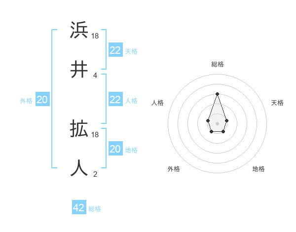 浜井 拡人さんを姓名の画数から五運を鑑定