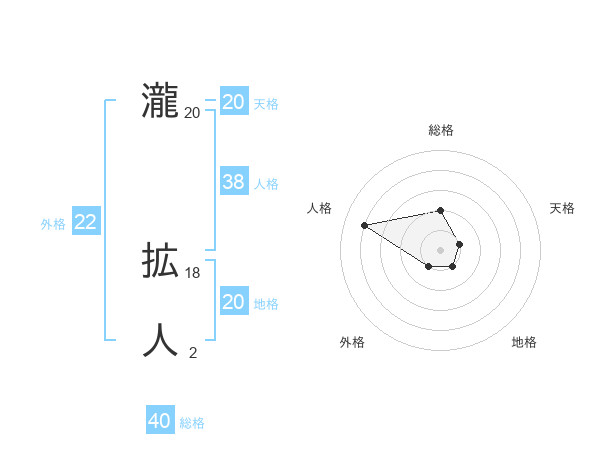 瀧 拡人さんの天格は20画の1点!