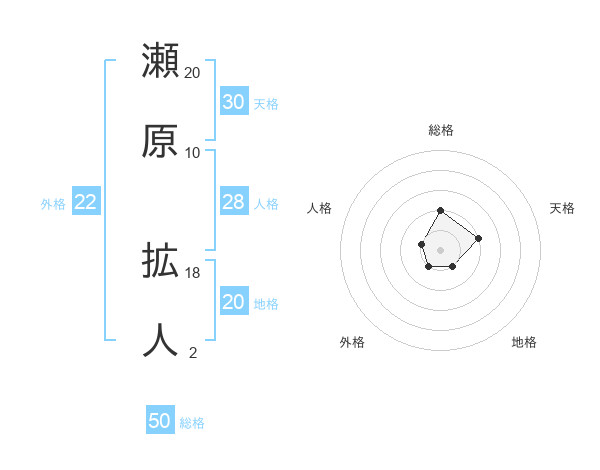 瀬原 拡人さんを姓名の画数から五運を鑑定