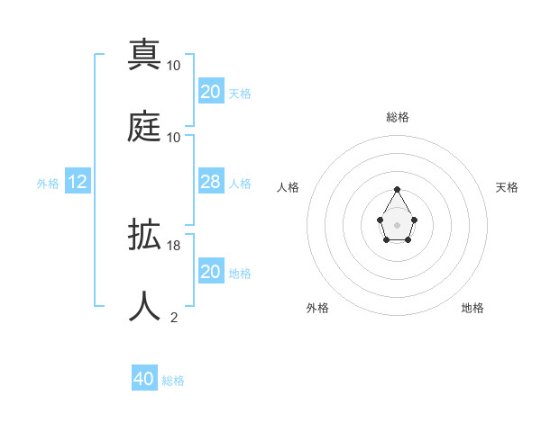 真庭 拡人さんを姓名の画数から五運を鑑定