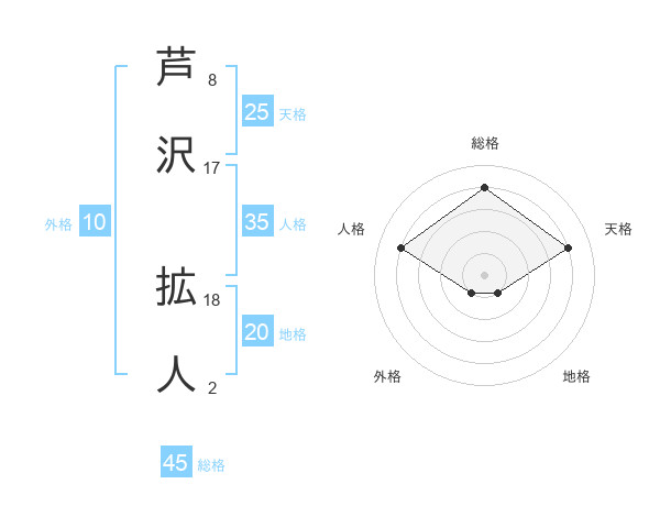 芦沢 拡人さんを姓名の画数から五運を鑑定