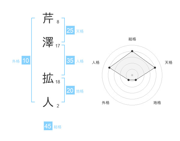 芹澤 拡人さんを姓名の画数から五運を鑑定