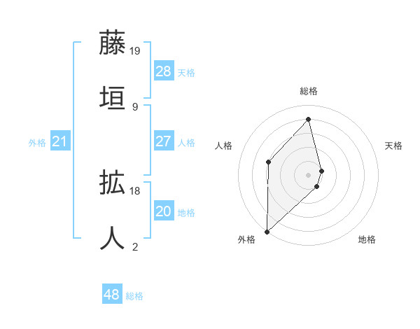 藤垣 拡人さんを姓名の画数から五運を鑑定