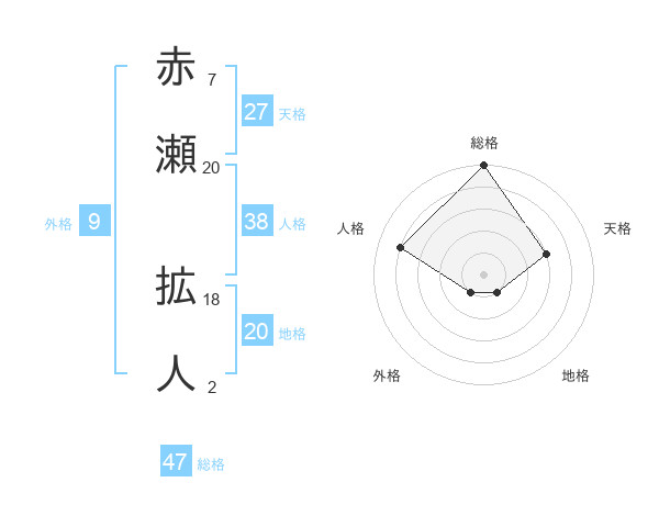 赤瀬 拡人さんを姓名の画数から五運を鑑定