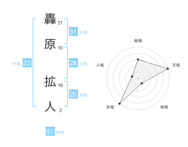 轟原 拡人さんの総格は51画の3点!
