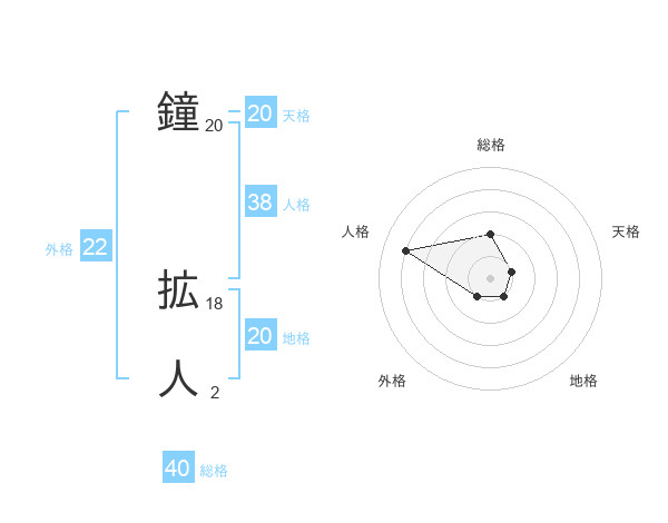 鐘 拡人さんを姓名の画数から五運を鑑定