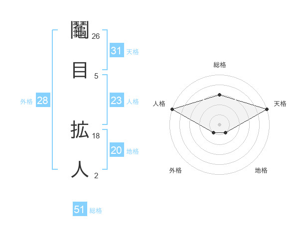 鬮目 拡人さんを姓名の画数から五運を鑑定