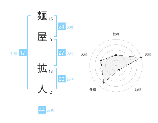 麺屋 拡人さんの総格は44画の2点!