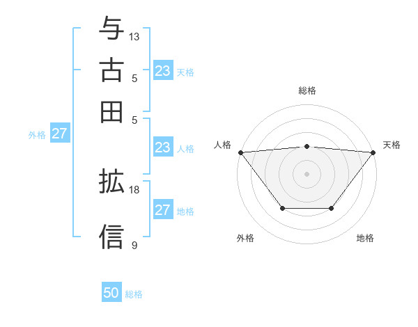与古田 拡信さんを姓名の画数から五運を鑑定