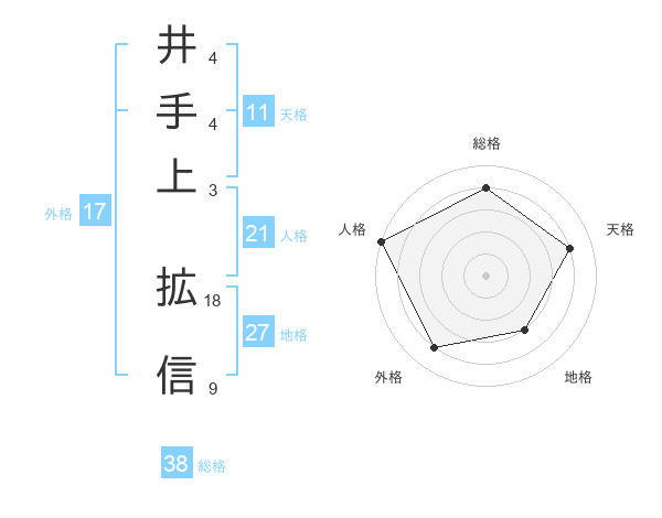 井手上 拡信さんを姓名の画数から五運を鑑定