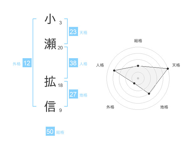 小瀬 拡信さんを姓名の画数から五運を鑑定
