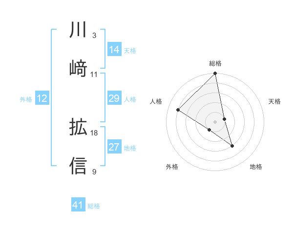 川﨑 拡信さんを姓名の画数から五運を鑑定