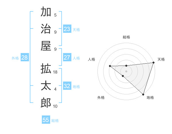 加治屋 拡太郎さんの天格は23画の5点