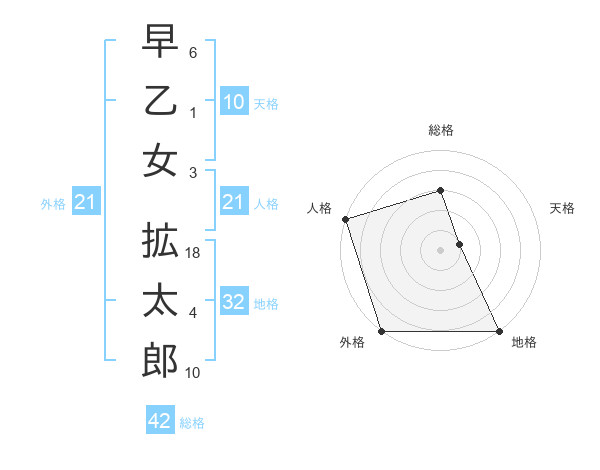 早乙女 拡太郎さんを姓名の画数から五運を鑑定