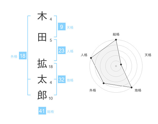 木田 拡太郎さんを姓名の画数から五運を鑑定