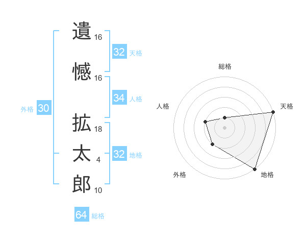 遺憾 拡太郎さんの総格は64画の1点!