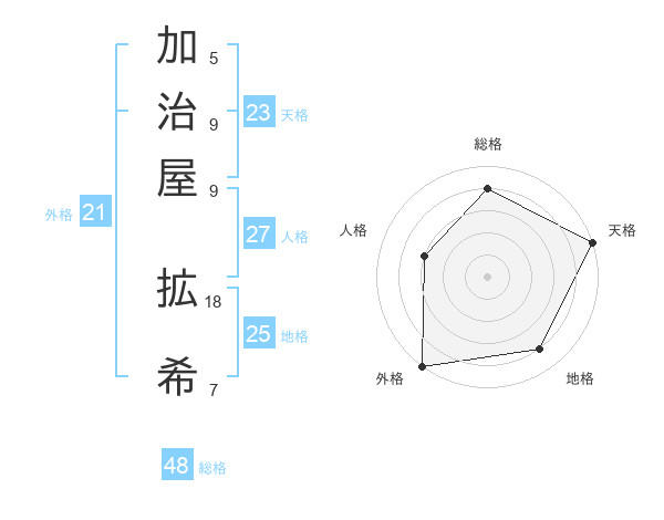 加治屋 拡希さんの天格は23画の5点!