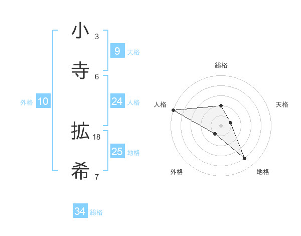 小寺 拡希さんを姓名の画数から五運を鑑定