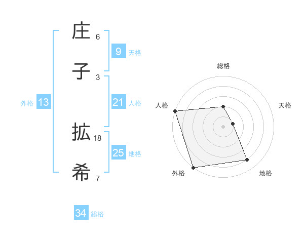 庄子 拡希さんを姓名の画数から五運を鑑定