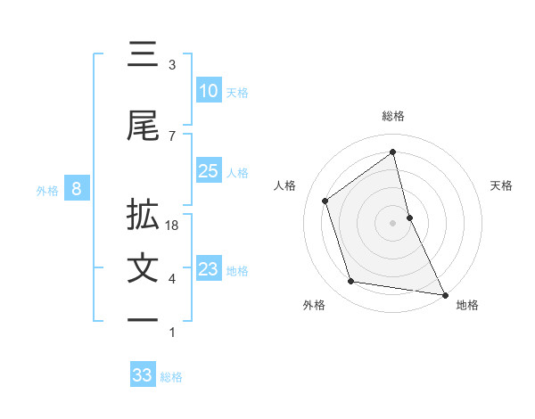 三尾 拡文一さんの総格は33画の4点!