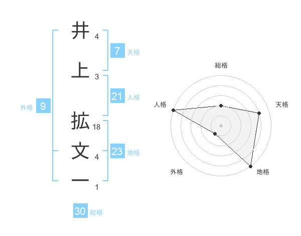 井上 拡文一さんの総格は30画の2点!