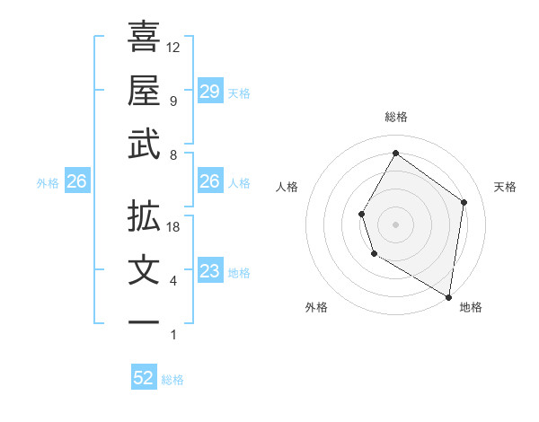 喜屋武 拡文一さんの総格は52画の4点
