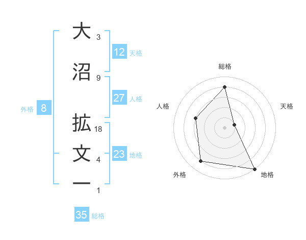 大沼 拡文一さんを姓名の画数から五運を鑑定