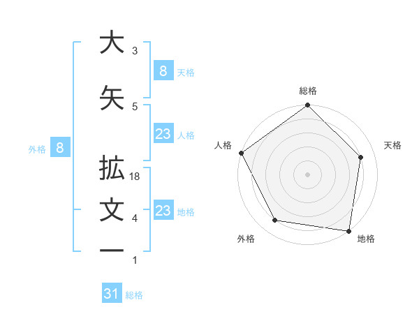 大矢 拡文一さんを姓名の画数から五運を鑑定