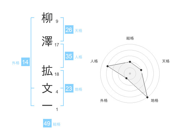 柳澤 拡文一さんを姓名の画数から五運を鑑定