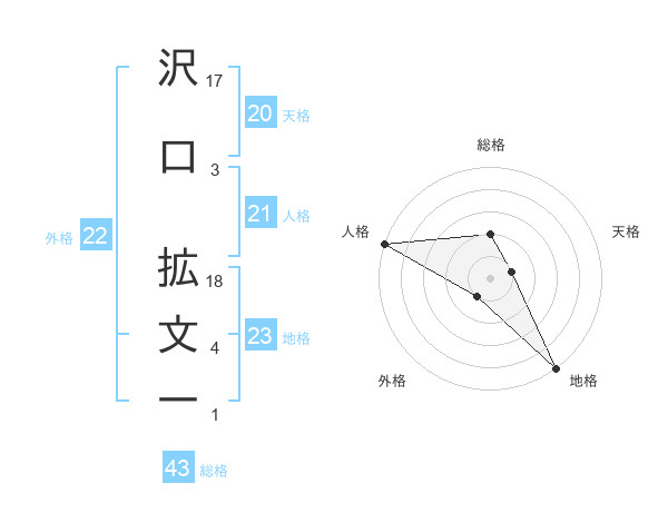沢口 拡文一さんを姓名の画数から五運を鑑定