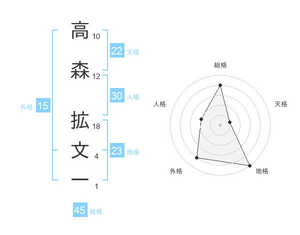 高森 拡文一さんの総格は45画の4点!