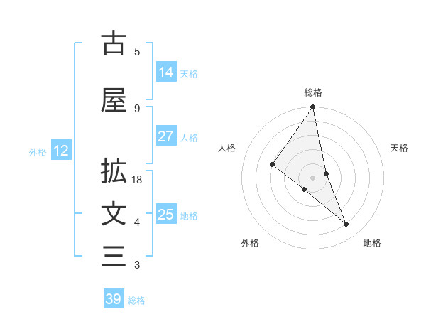 古屋 拡文三さんを姓名の画数から五運を鑑定