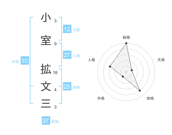 小室 拡文三さんを姓名の画数から五運を鑑定