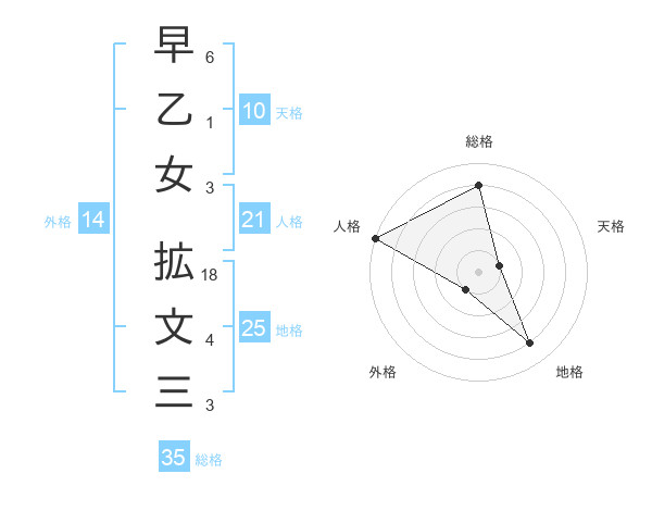 早乙女 拡文三さんの総格は35画の4点