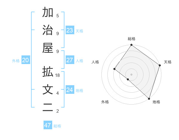 加治屋 拡文二さんを姓名の画数から五運を鑑定