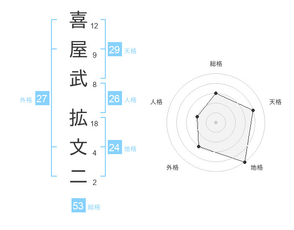 喜屋武 拡文二さんの総格は53画の3点