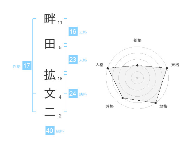 畔田 拡文二さんを姓名の画数から五運を鑑定
