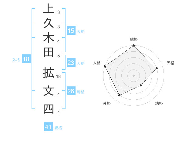 上久木田 拡文四さんの総格は41画の5点!