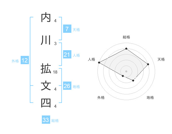 内川 拡文四さんを姓名の画数から五運を鑑定