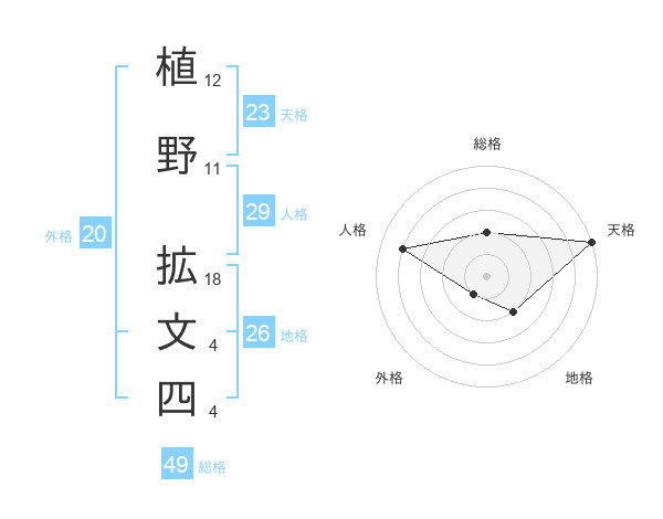 植野 拡文四さんを姓名の画数から五運を鑑定