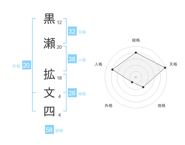 黒瀬 拡文四さんを姓名の画数から五運を鑑定