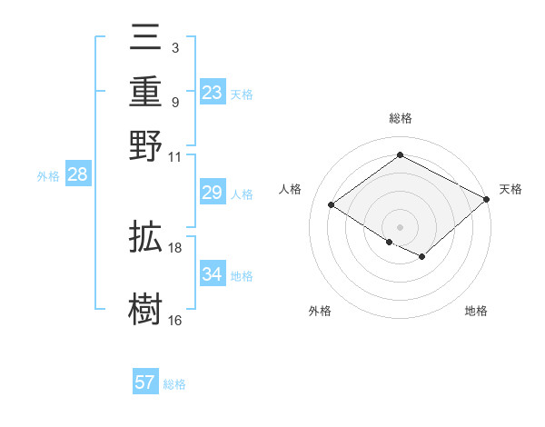 三重野 拡樹さんの総格は57画の4点!