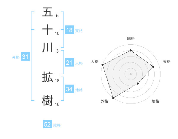 五十川 拡樹さんを姓名の画数から五運を鑑定