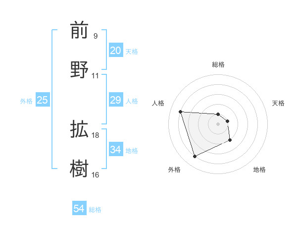 前野 拡樹さんを姓名の画数から五運を鑑定