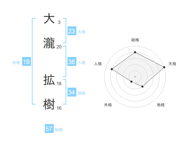 大瀧 拡樹さんの天格は23画の5点!