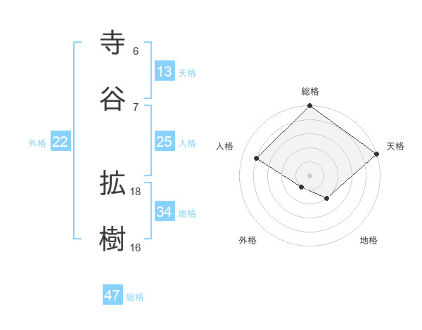 寺谷 拡樹さんを姓名の画数から五運を鑑定