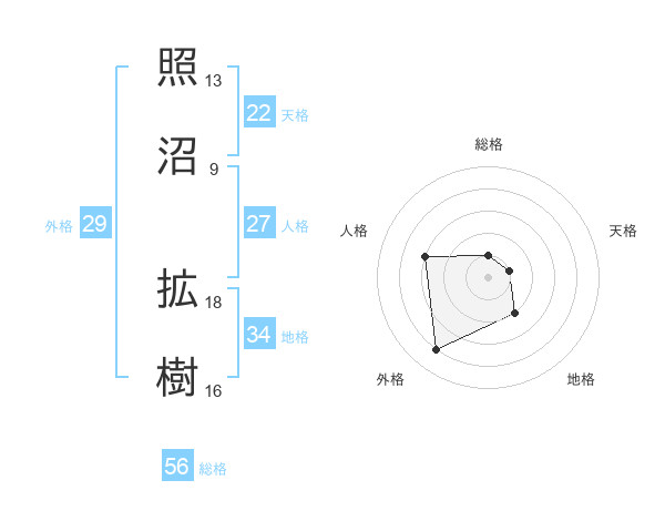照沼 拡樹さんを姓名の画数から五運を鑑定