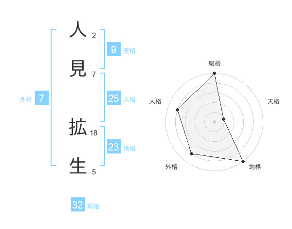 人見 拡生さんの総格は32画の5点!